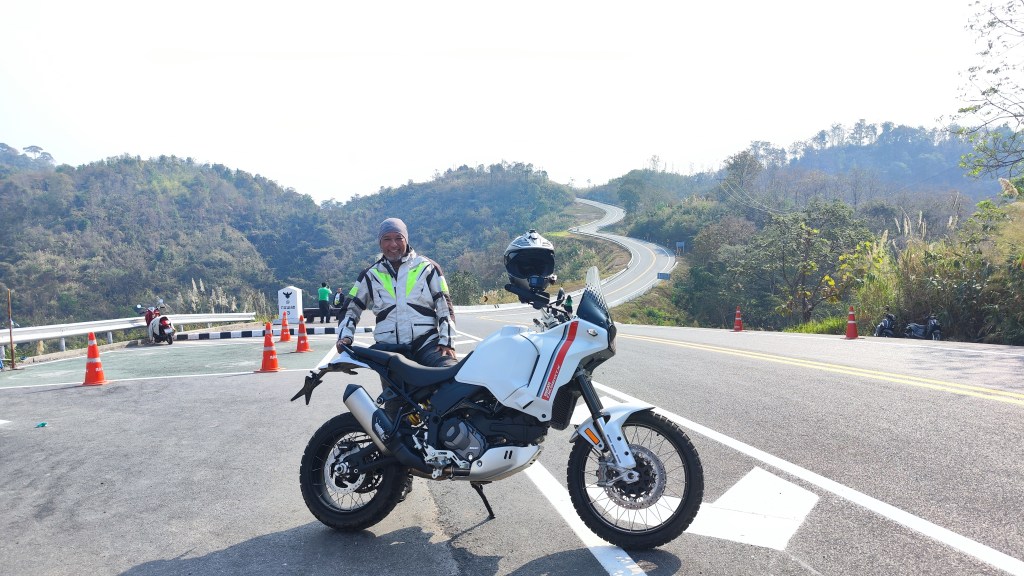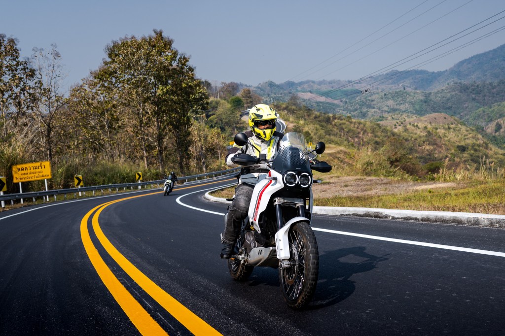 Kami dibawa menunggang di kawasan pergunungan dan bukit bukau di utara Thailand, yang mana laluan ini menjadi pilihan eksplorasi para pencinta motosikal jarak jauh atau motosikal lasak. Keadaan topografi laluan yang dipilih sangat mencabar dengan selekoh-selekoh yang berterusan walau pun sudah satu jam kami menunggang.