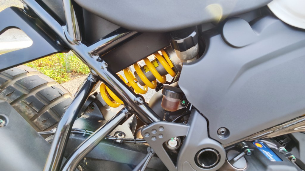Dalam pada tungganguji yang dijalankan di laluan-laluan ini, saya dapati sistem suspensi standard yang dibekalkan iaitu daripada KYB (KAYABA) tidak mengecewakan. Penggunaan penyerap hentakan jenis terbalik di hadapan, bersaiz 46mm dan penyerap hentakan tunggal belakang yang boleh dilaras sepenuhnya, beroperasi dengan sangat baik ketika pengendalian dalam selekoh, atau ketika penggunaan brek yang memerlukan kestabilan motosikal. Cuma agak sukar ‘menghadam’ jenama KYB ini bersama Ducati. Selalunya Ohlins, menjadi pilihan utama Ducati.