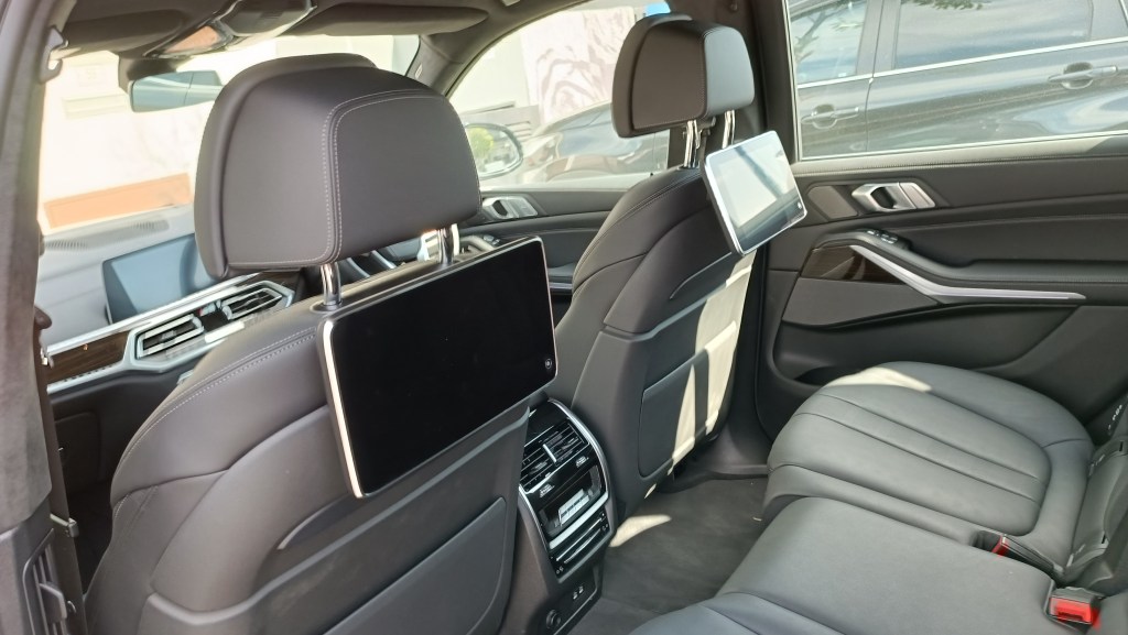 Untuk menguraikan sistem elektronik yang turut menjadi sebahagian daripada kebolehan jentera BMW X7 ini, ianya agak dalam satu senarai yang amat panjang. Cukuplah sekiranya saya membariskan beberapa kebolehannya: steering boleh laras secara elektronik (samada pelarasan tahap ketinggian steering atau pelarasan lebih jauh atau lebih dekat dengan papan pemuka kenderaan), kulit yang meyaluti ketujuh-tujuh kerusi jentera ini ternyata berkualiti tinggi, penyaman udara lima zon, sistem bunyi berjenama Harman Kardon dengan 16 pembesar suara, tirai atau shades elektrik untuk tingkap sisi, dan bumbung panoramik Roof Sky Lounge serta sistem hiburan untuk penumpang belakang yang dapat dilihat dengan pemasangan skrin-skrin sentuh di belakang tempat duduk barisan hadapan.