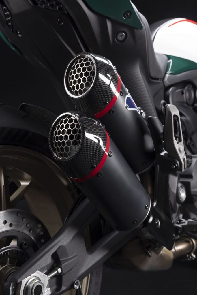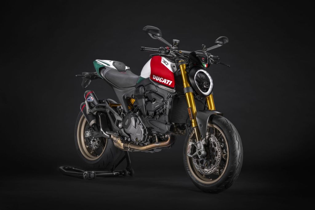 - Featuring a commemorative “30° Anniversario” Tricolore livery with matching passenger seat cover, along with a personalised plaque displaying the bike’s serial number on the handlebar and a bespoke key-on animation.