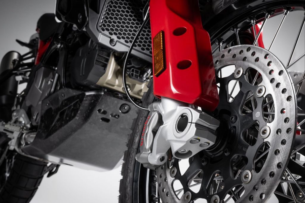 - Carbon sump guard and billet aluminium rear brake and gear lever for added lightness and robustness to the DesertX Rally.