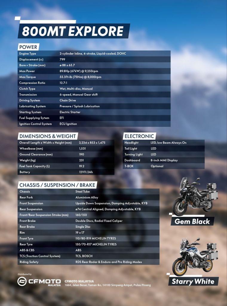 PULAU PINANG, 21 JULAI 2024 – CFMOTO 800MT Explore adalah versi 800MT yang dipertingkatkan