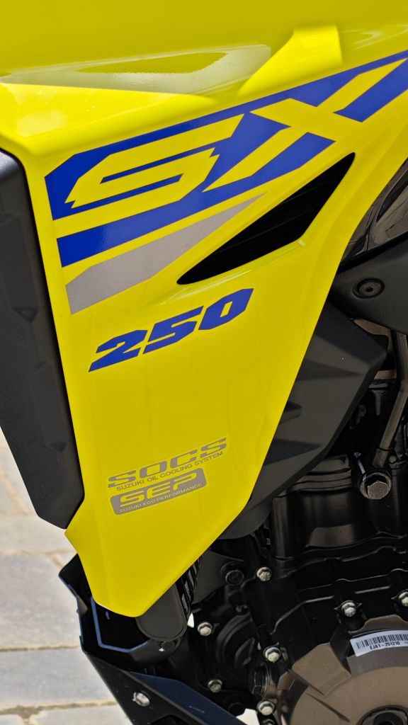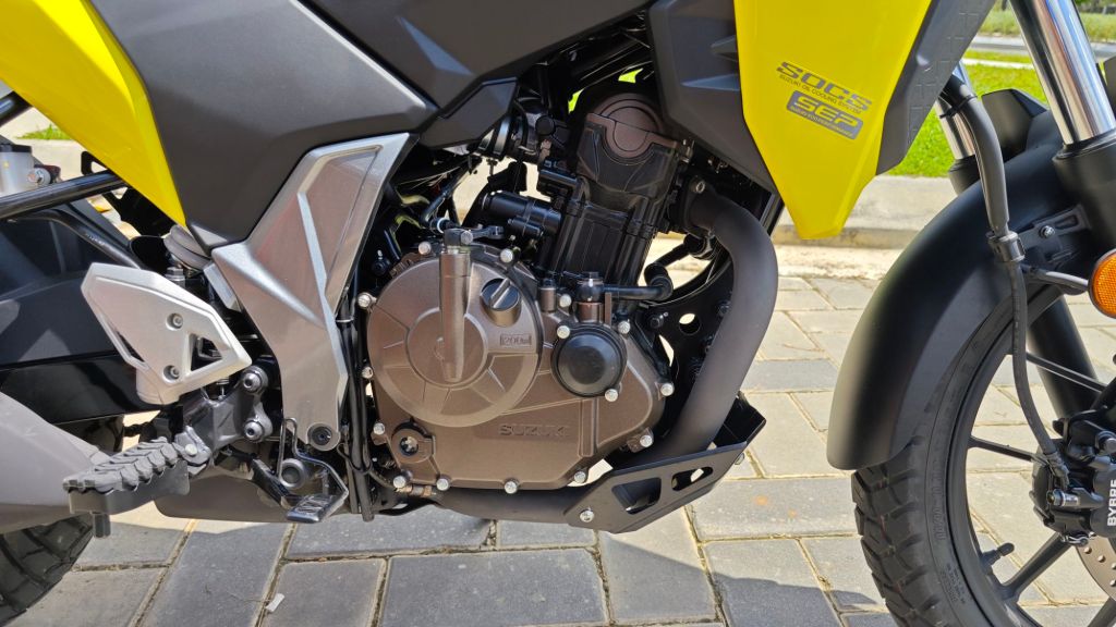 Selain itu, ini turut dilengkapi dengan enjin 4-injap suntikan bahan api SOHC yang digabungkan dengan transmisi 6-kelajuan. Walaupun sering motor jenis kembara ini dilabel sebagai tunggangan hujung minggu, V-Strom 250SX pula memberikan kelainan dengan teknologi yang disesuaikan sebagai keutamaan tunggangan harian yang selesa dan berkuasa. Enjin Suzuki Eco Performance (SEP) mengimbangi penjimatan bahan api yang baik selain dilengkapi teknologi suntikan bahan api dan teknologi Sistem Penyejukan Minyak Suzuki (SOCS) yang memastikan suhu enjin tetap sejuk walaupun dalam keadaan yang lincah serta mencabar. Secara keseluruhan, V-Strom 250SX adalah motosikal yang mudah dikendalikan serta mudah diselenggara sekaligus menawarkan ketenangan fikiran kepada pemiliknya.