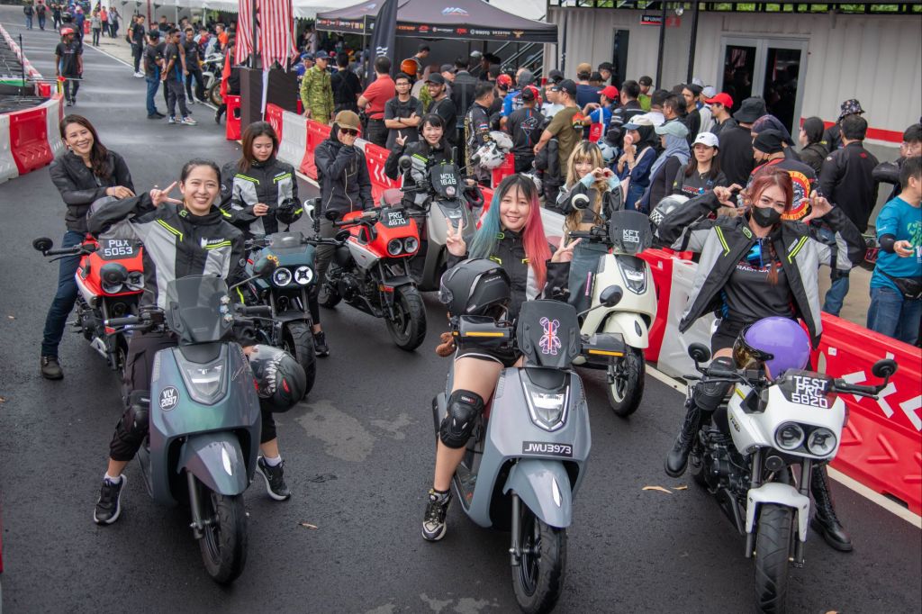 Pada sesi tengahari, para peserta juga tidak bosan kerana dihidangkan dengan pertunjukkan tunggangan motorsikal wanita dari kumpulan pempengaruh sosial terkenal, Papio Girls dan Gemma Girls yang mengelilingi litar perlumbaan tersebut.