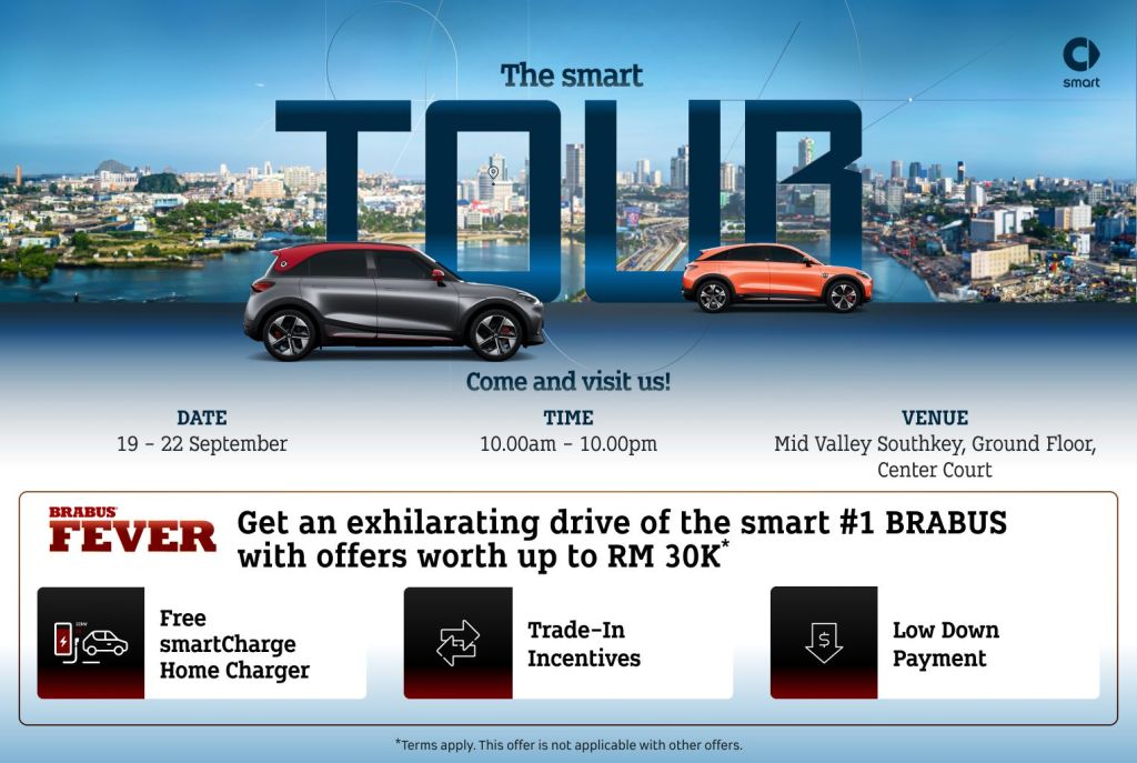 Ini masanya untuk anda merasai sendiri teknologi EV terkini, bertanya dengan pakar, dan jangan lepaskan peluang dengan tawaran istimewa yang disediakan sepanjang program ini. Untuk maklumat lanjut atau berhubung dengan pengedar sah, layari https://my.smart.com/#/.