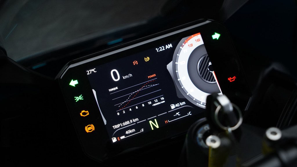 Menelusuri jenis papan pemukanya pula, model ini telah dipasang dengan Transistor Filem Nipis (TFT) yang memudahkan penunggang melihat visual meter secara jelas walaupun pada waktu siang dan silau. Disertakan juga dengan dua port pengecasan USB jenis-C dan jenis-A, motosikal ini pasti menjadi pilihan bijak.
