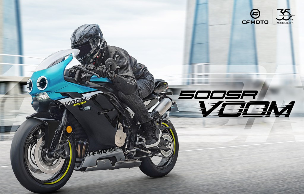 Melihat pada binaan enjinnya dengan sesaran 499cc, kuasa maksimum CFMOTO 500SR VOOM mampu mencecah sehingga 58kw/12,500rpm beserta nilai tork mencapai 49Nm/10,000rpm. Saiz piston dan lejangnya memiliki ukuran 63mm × 40.1mm dengan kadar nisbah mampatan setinggi 12.0.