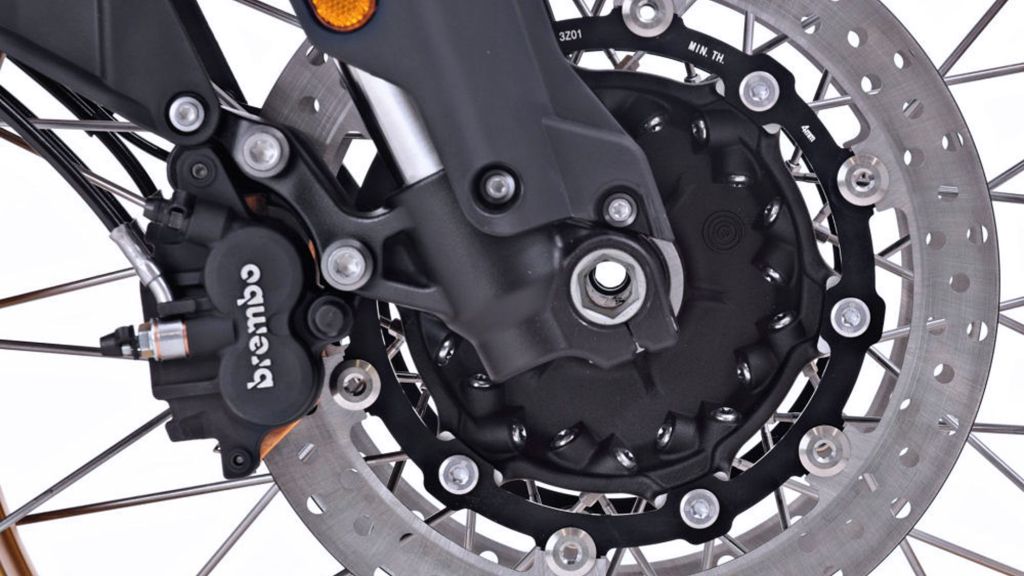 berdiameter 305mm di bahagian hadapan dan brek cakera tunggal 265mm di bahagian belakang memastikan kuasa pemberhentian motosikal yang efisien walaupun dalam
