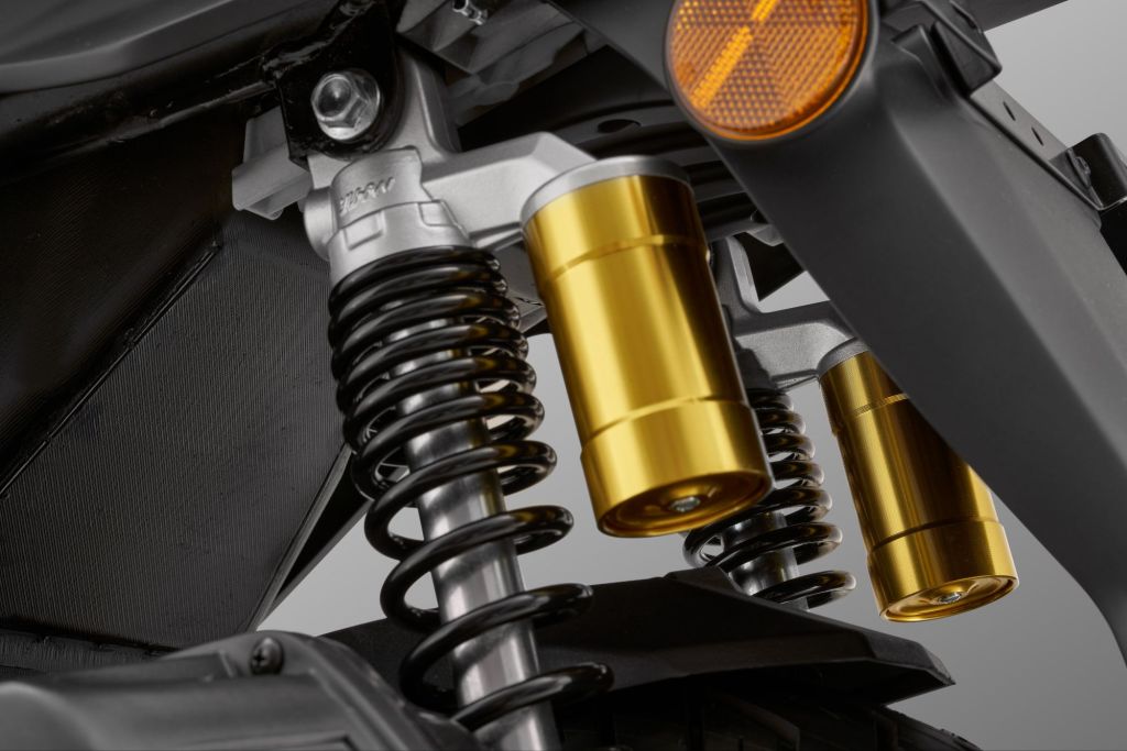 Untuk sistem suspensi, model ini dilengkapi fork teleskopik di hadapan dan rear coil spring