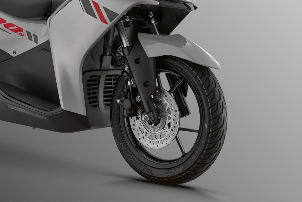 hadapan dan 120/70-14 di belakang, kedua-duanya jenis tanpa tiub (tubeless) untuk