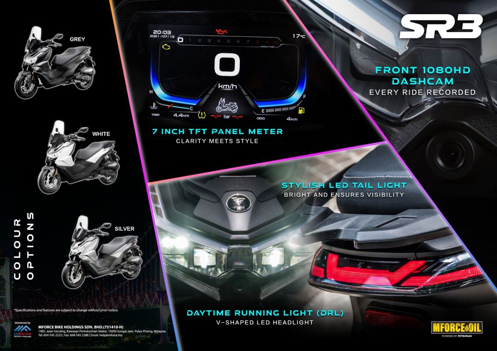 VOGE SR3 boleh didapati di semua pengedar sah Mforce di seluruh Malaysia dalam masa terdekat. Model ini hadir dalam tiga pilihan warna menawan iaitu White, Silver dan Grey, melambangkan gaya premium dan kematangan dalam setiap sudut reka bentuknya.