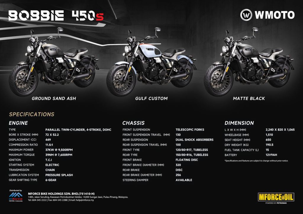memperkenalkan model terbaharu dalam segmen cruiser, iaitu WMOTO Bobbie 450s.