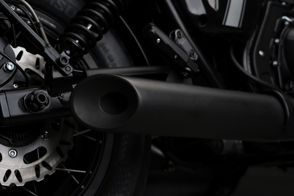 Tempat duduk dwi direka untuk keselesaan jangka panjang, manakala muffler berkembar memberikan bunyi enjin yang mantap dan berkarakter. Turut disertakan ialah brek parkir untuk keselamatan tambahan semasa parkir dan peredam stereng
