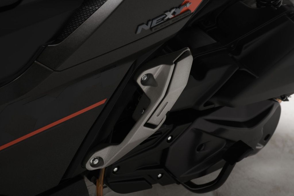 Ciri keselamatan tambahan termasuk Traction Control System (TCS), suis keselamatan tapak sisi dan kamera pemanduan di hadapan. Bagi kemudahan harian, terdapat poket simpanan depan dengan penutup magnetik, ruang pembawa belakang (rear carrier) serta penyambungan aplikasi pihak ketiga seperti Carbit Ride dan Roadcam yang membolehkan penunggang menyemak data perjalanan dan rakaman video dengan mudah.