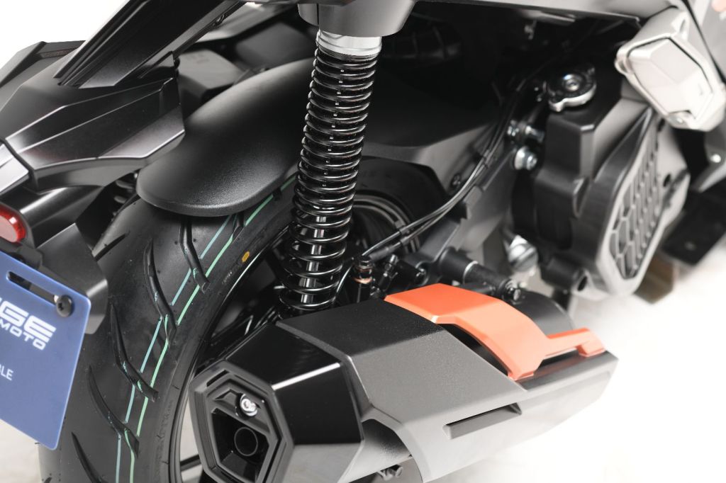 Dari segi suspensi, bahagian hadapan dilengkapi teleskopik dengan jarak gerak 103 mm, manakala bahagian belakang menggunakan penyerap hentakan berkembar menegak dengan jarak perjalanan 130 mm, memberikan keseimbangan antara keselesaan dan kestabilan.