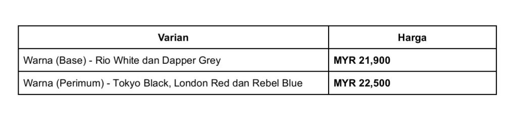 - Ground clearance ditingkatkan, tempat duduk lebih selesa