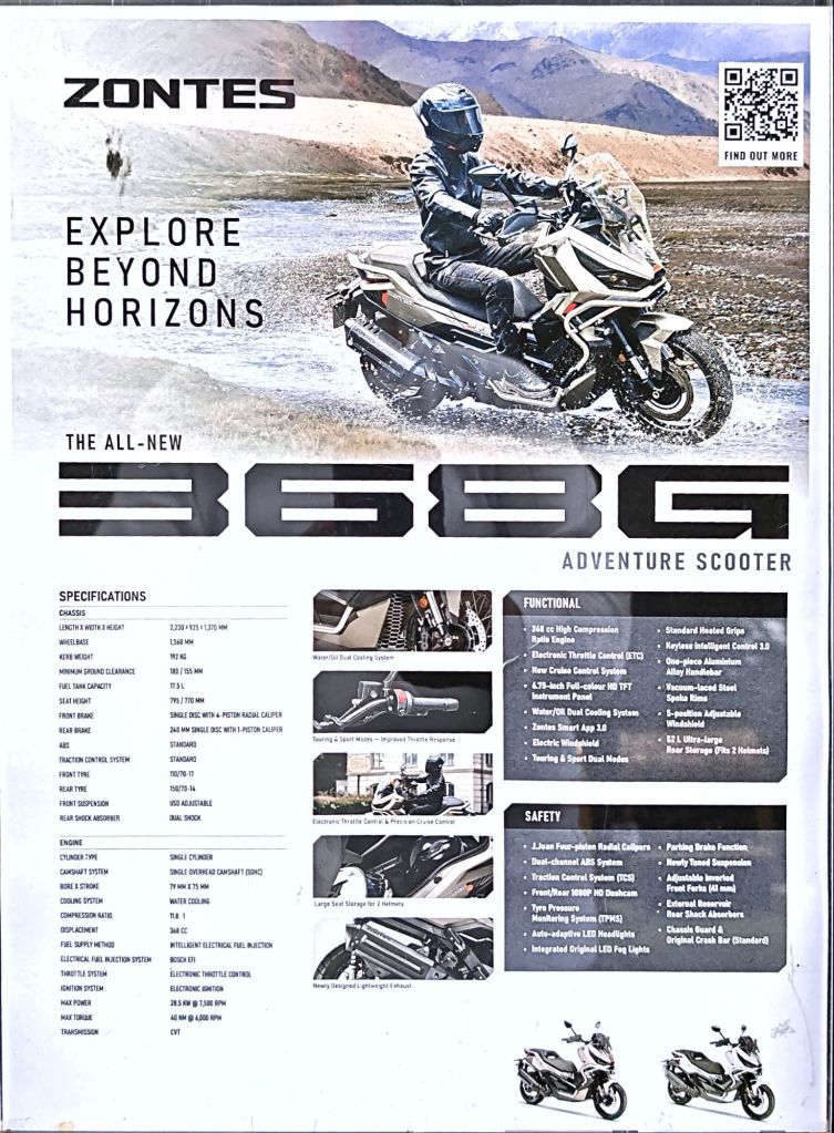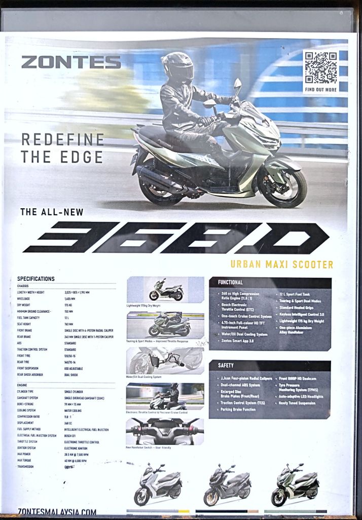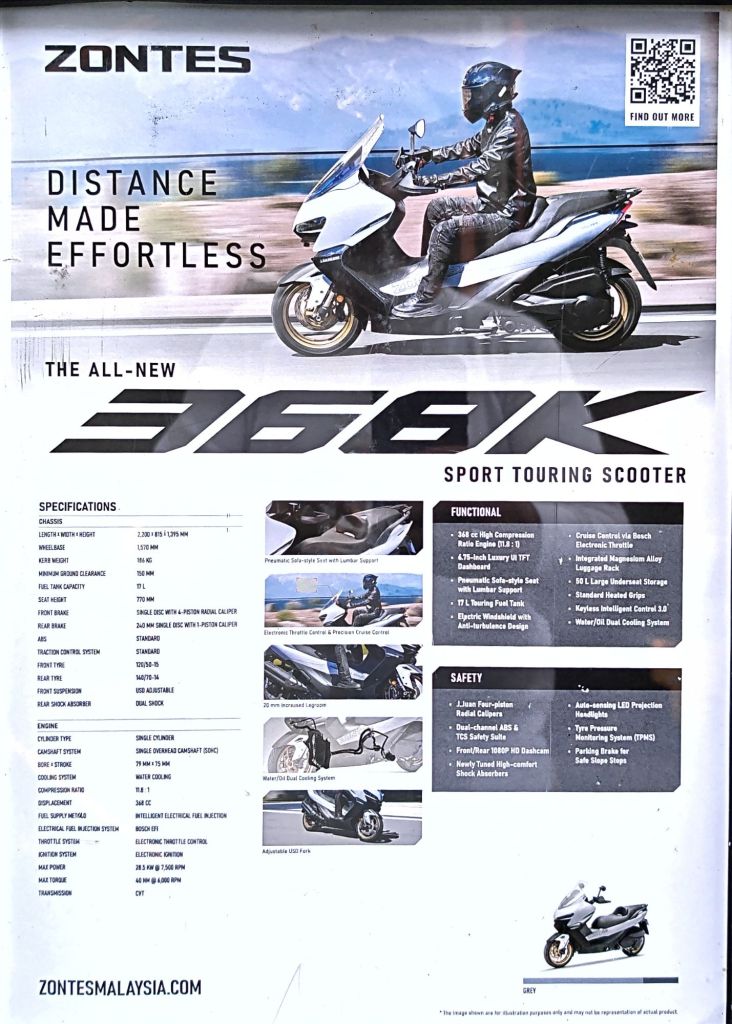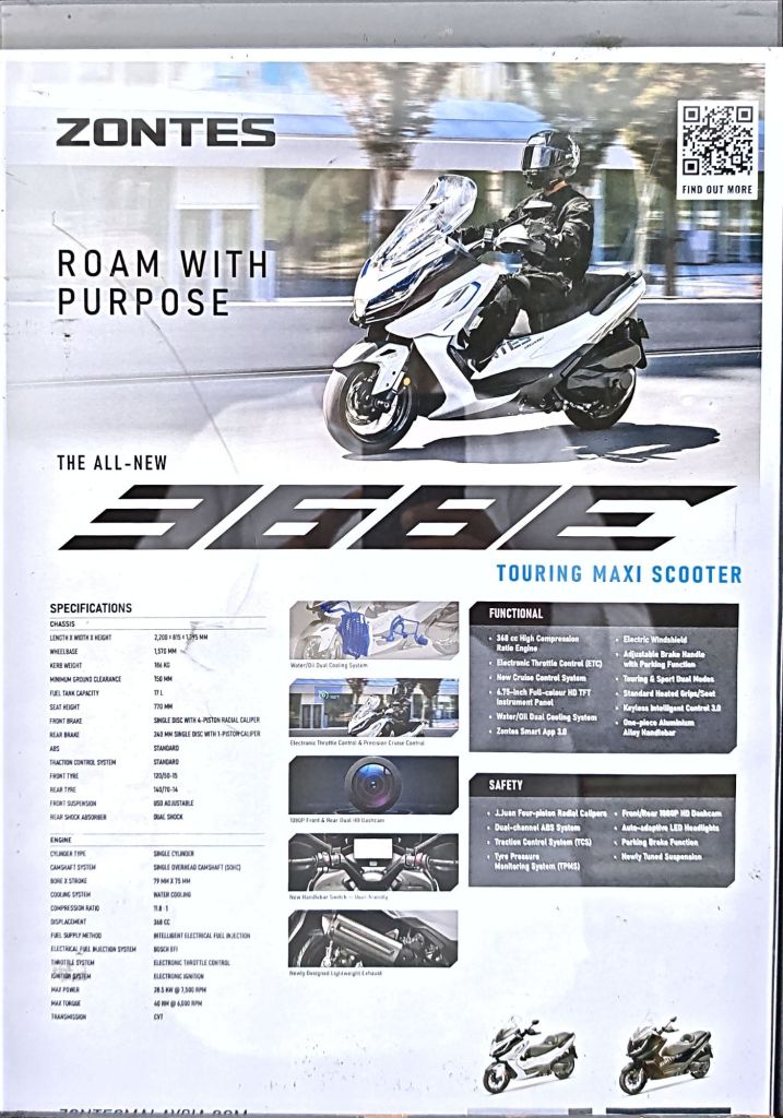 Menurut Pengurus Pemasaran Nasional Zontes Malaysia, En. Goi Seong Keng, tanpa mengira identiti anda sebagai penunggang dalam bandar, kaki konvoi, atau penunggang lasak hujung minggu, skuter ZONTES 368 mampu menepati selera anda.