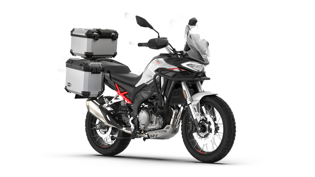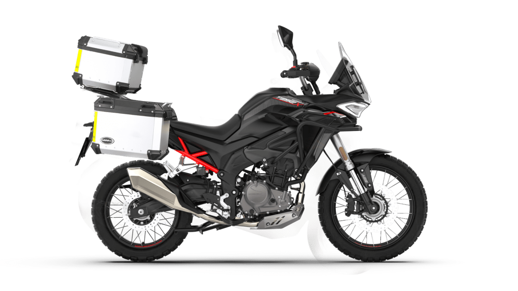 tunggal belakang dengan angkup 1-piston, masing-masing berdiameter 300 mm (hadapan) dan 240 mm (belakang). Motosikal ini menggunakan tayar Pirelli bersaiz 110/80-19 di hadapan dan 150/60-17 di belakang, bagi memastikan cengkaman dan kestabilan yang baik. Dari segi dimensi, ia berukuran 2,120 mm panjang, 840 mm lebar dan 1,210 mm tinggi, dengan jarak roda 1,405 mm, ketinggian tempat duduk 820 mm serta kelegaan tanah 180mm.